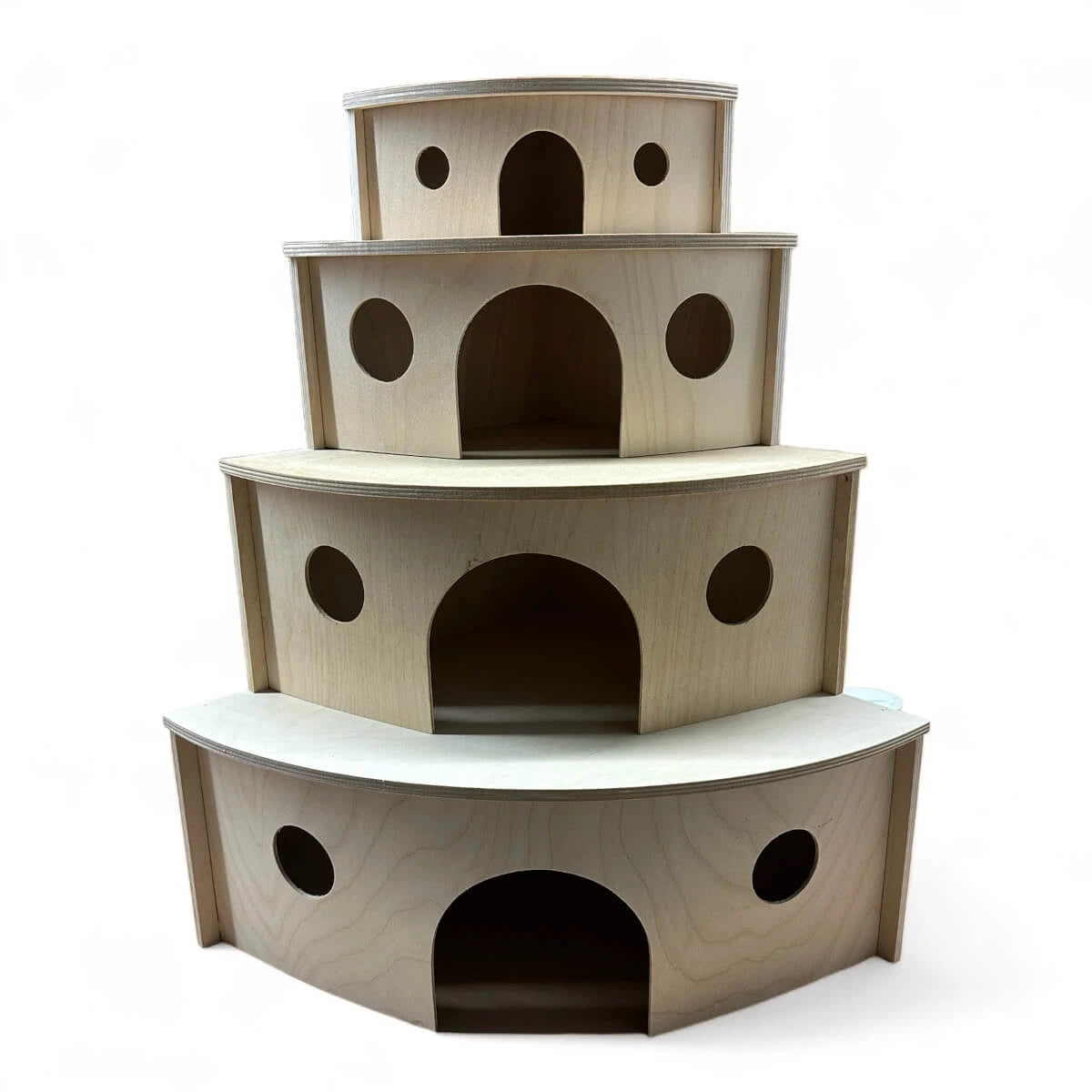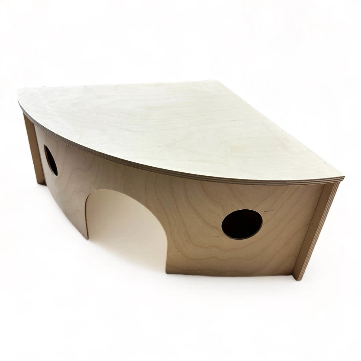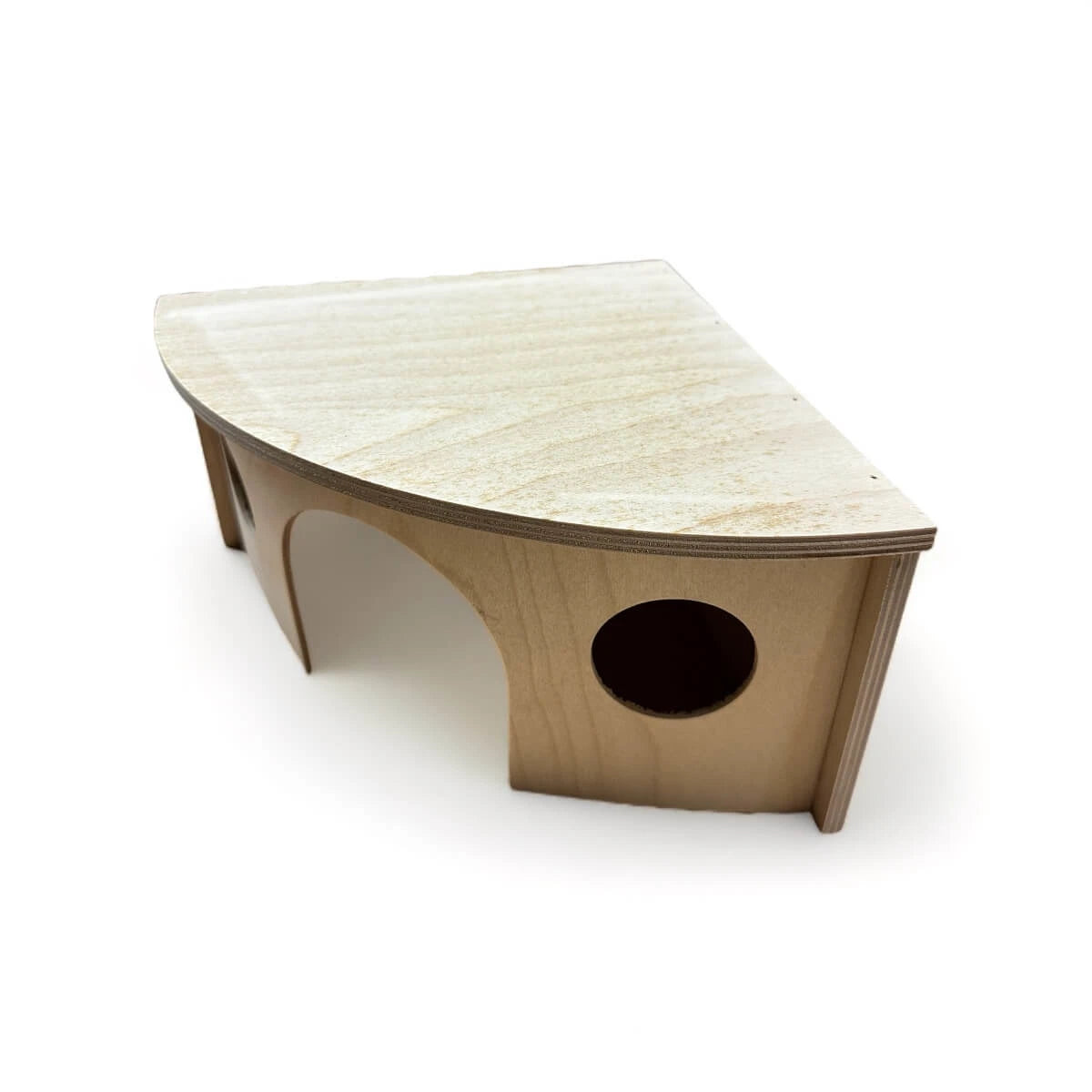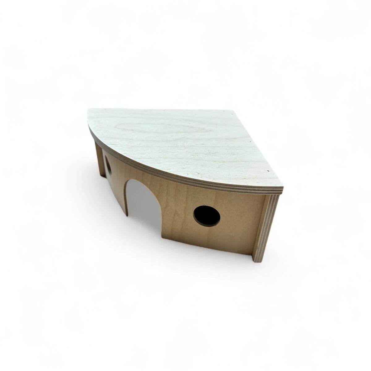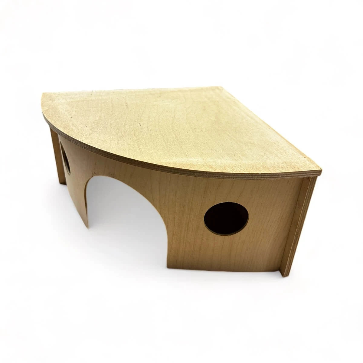 Dieses praktische Eckhaus für Nager ist optimal für eine Ecke des Käfigs oder Innengeheges geeignet und spart damit im Gegensatz zu einem viereckigen Haus merklich Platz ein: Mit seinem dreieckigen Design nutzt es den Raum optimal aus – mehr Platz im Gehege zum Spielen und Toben. Das stabile Nager-Holzhaus ist nicht nur ein sicherer Rückzugsort für dein Tier, sondern dient auch als Klettermöglichkeit und Aussichtsplattform.