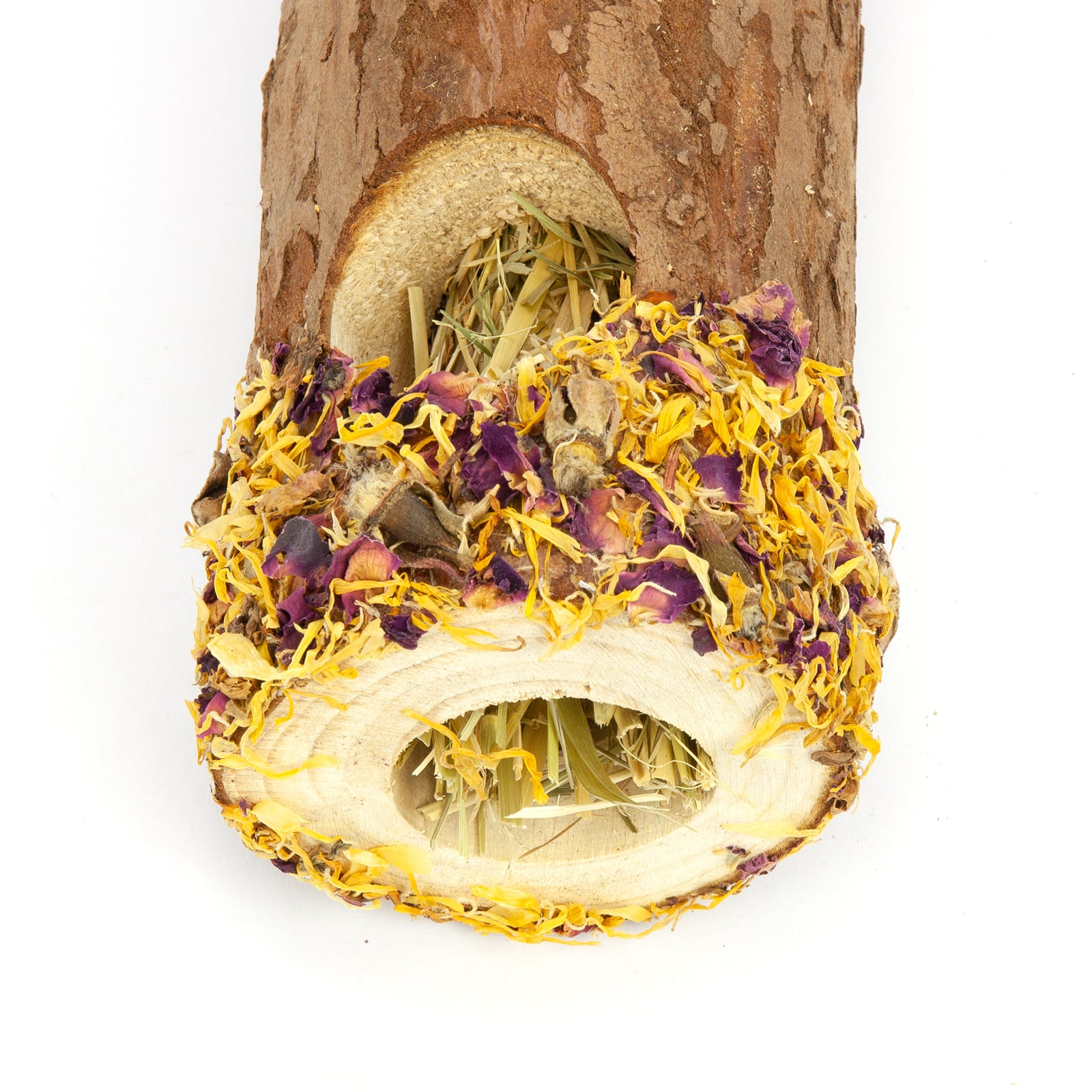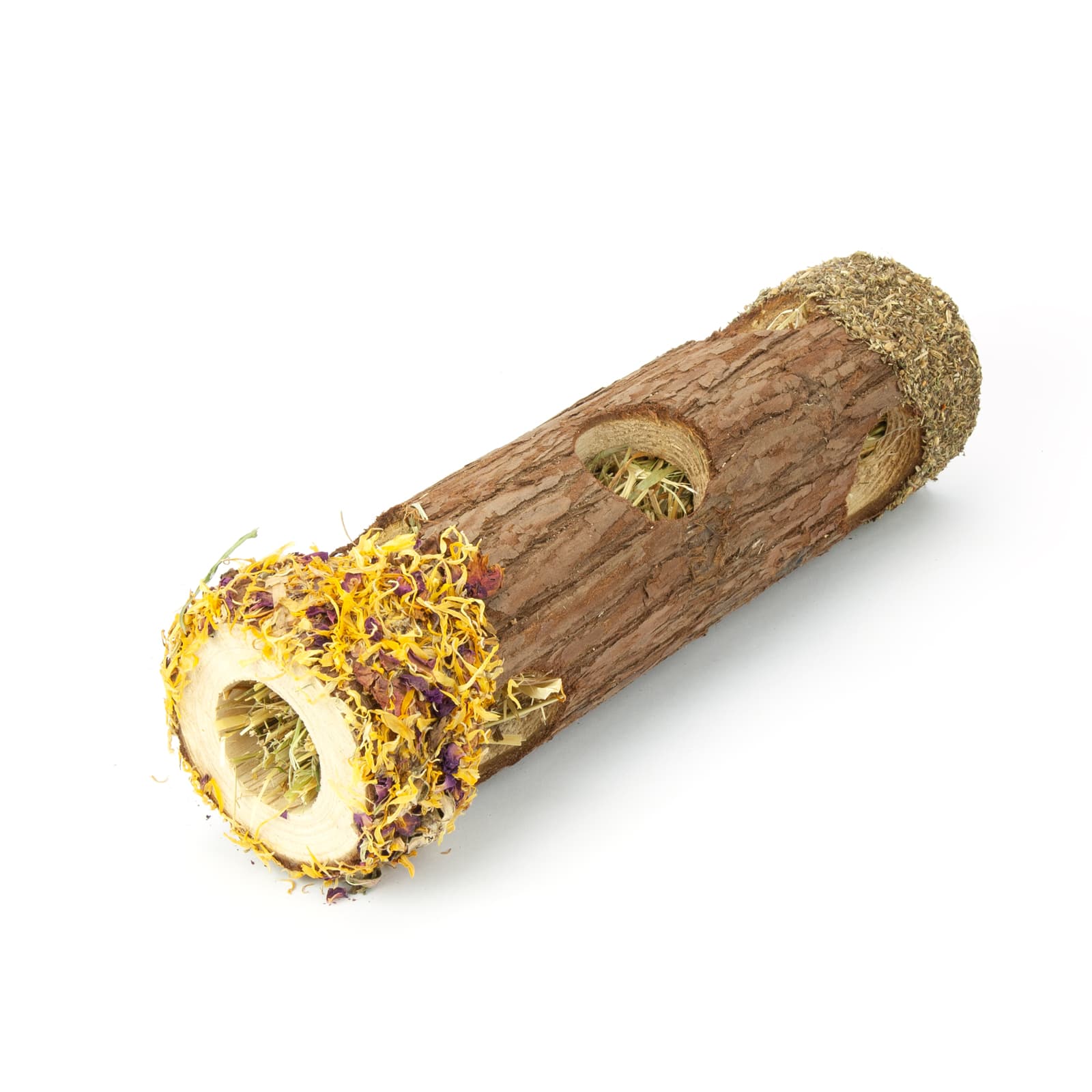 Der "Tummel-Tunnel" mit aromatischen Kräutern und Blüten bietet deinem Tier eine gesunde und sinnvolle Beschäftigung und sorgt für viel Abwechslung im Nager-Zuhause. Für kleinere Nager wie Mäuse oder Hamster wird er zum natürlichen Abenteuerspielplatz mit schmackhaften Leckereien. Für größere Tiere kannst du zusätzliche Snacks darin verstecken – ideal zum Erarbeiten und Knabbern.
