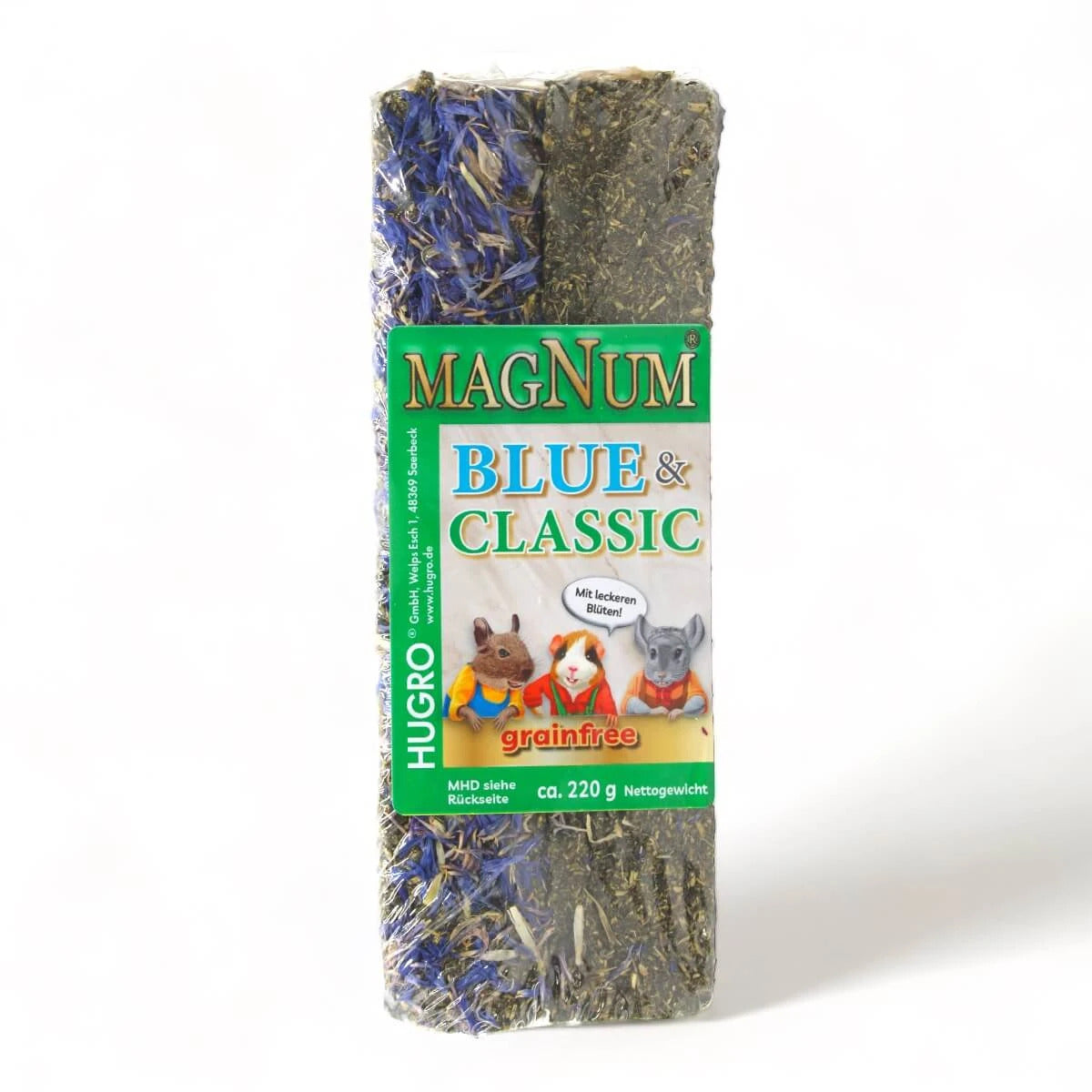 Die beiden Knabberstangen „Magnum Blue & Classic“ versorgen dein Meerschweinchen, deinen Hamster oder andere Nager mit nährstoffreichen Kräutern und Blüten – für eine gesunde Beschäftigung und das Wohlbefinden deines Tiers. An den etwa 7,5 cm langen und 3,5 cm breiten Stangen haben deine Tiere langen Knabberspaß.