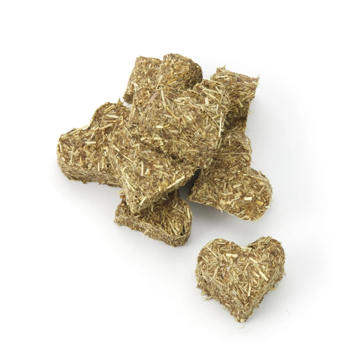 Mit viel Liebe und aus hochwertigen Zutaten hergestellt: Die "Snackherzen aus Timothy-Heu" bestehen zu 100 % aus pflanzlichen Zutaten und sind ein gesunder Leckerbissen für deine Meerschweinchen, Hamster, Kaninchen oder andere Nager.