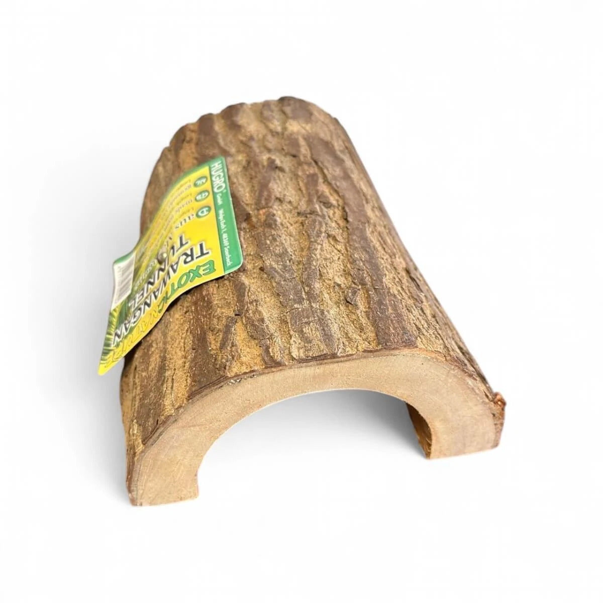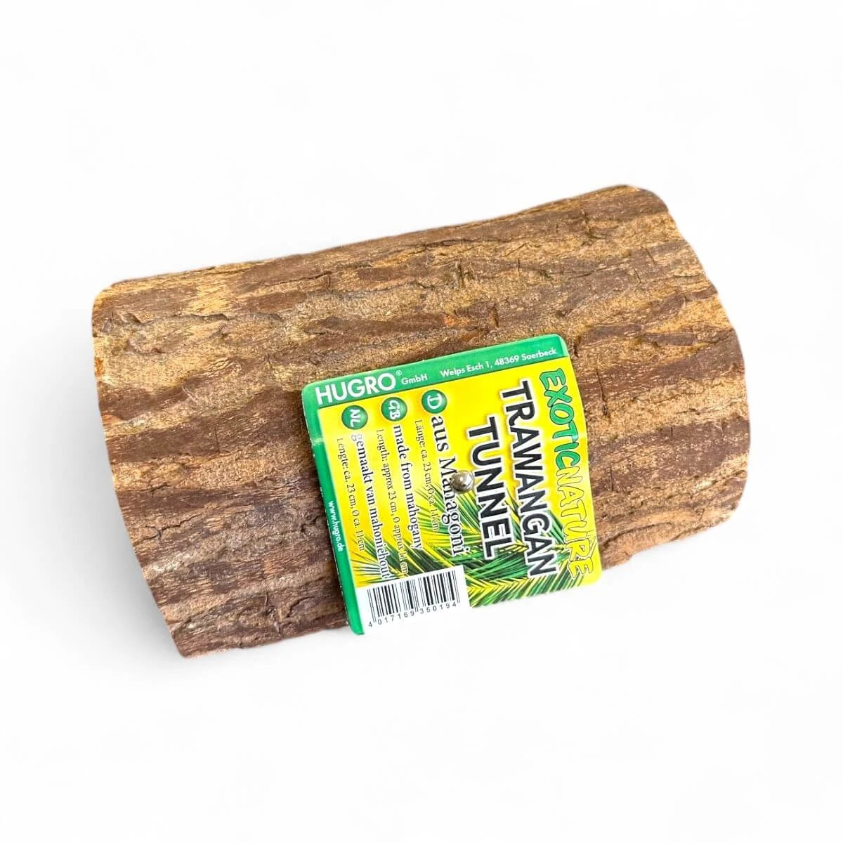 Der Nagertunnel ist ein reines Naturprodukt – jedes Stück ein Unikat. Der unbehandelte Stamm aus zertifiziertem Mahagoniholz wurde lediglich glatt abgesägt und sorgfältig ausgehöhlt, damit sich deine Tiere nicht daran verletzen können.