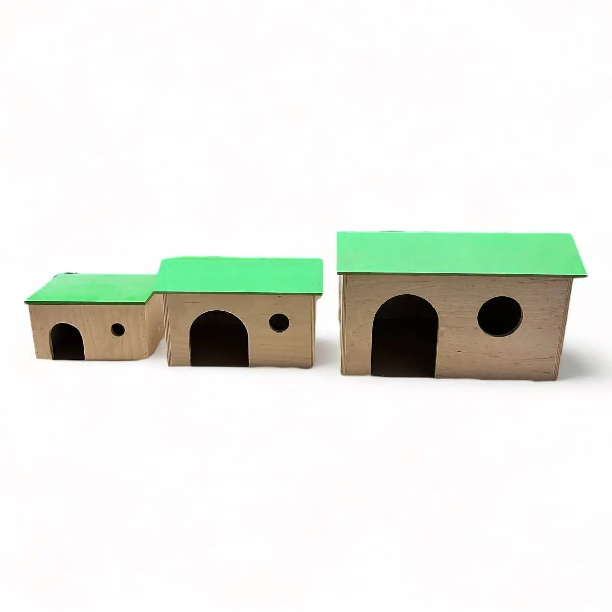 Unser Nagerhaus Typ "Weekend" ist in drei verschiedenen Größen erhältlich – für kleine und größere Nager. So kannst du individuell entscheiden, welche Variante am besten zu deinen Fellnasen passt.