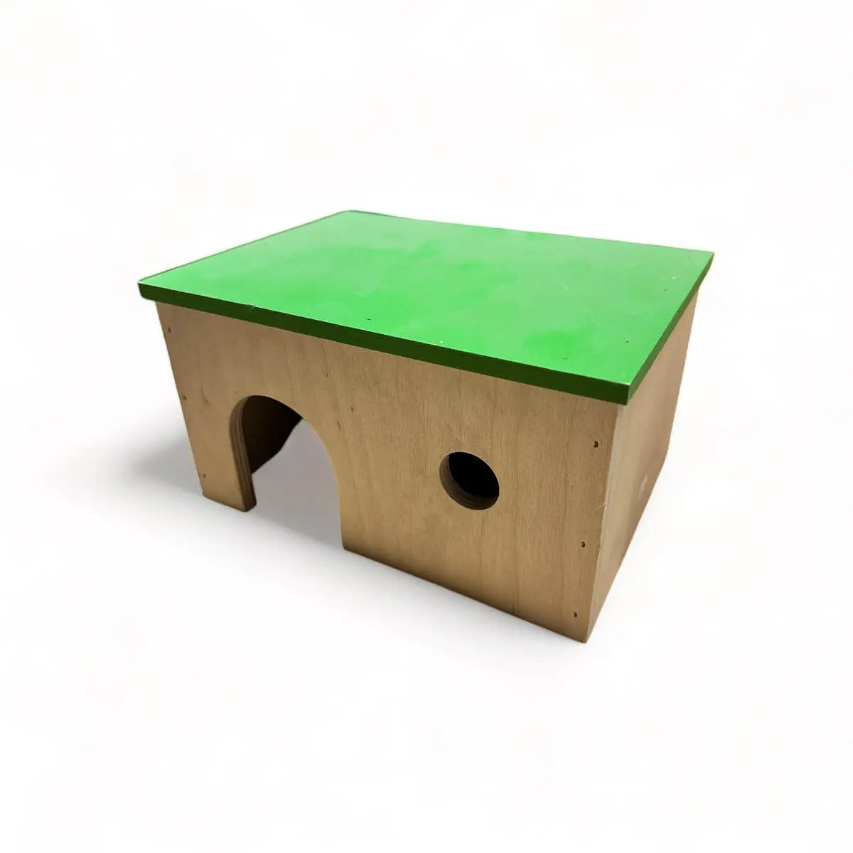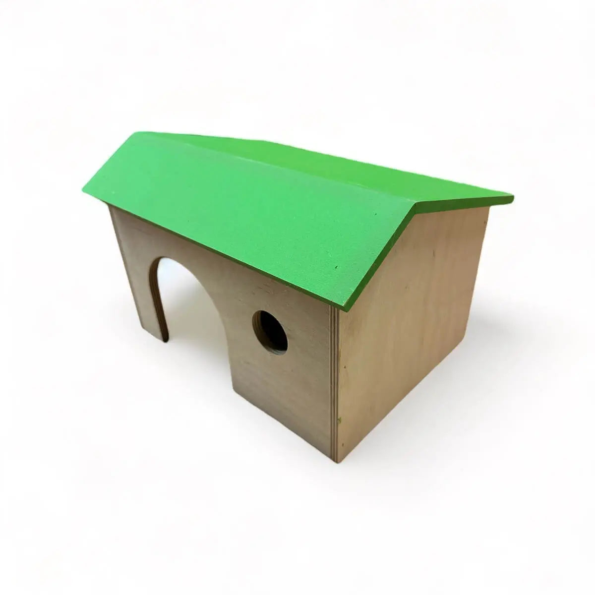 Deine Tiere sind besonders knabberfreudig? Keine Sorge: Das Nagerhaus besteht aus unbehandeltem Naturholz, und die grüne Dachfarbe ist selbstverständlich ungiftig – sie wird sogar für Kinderspielzeug verwendet.