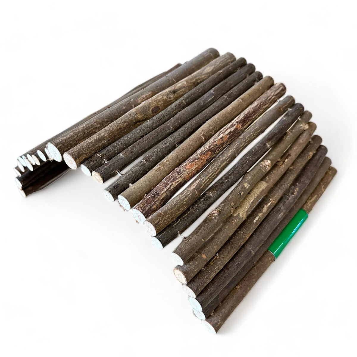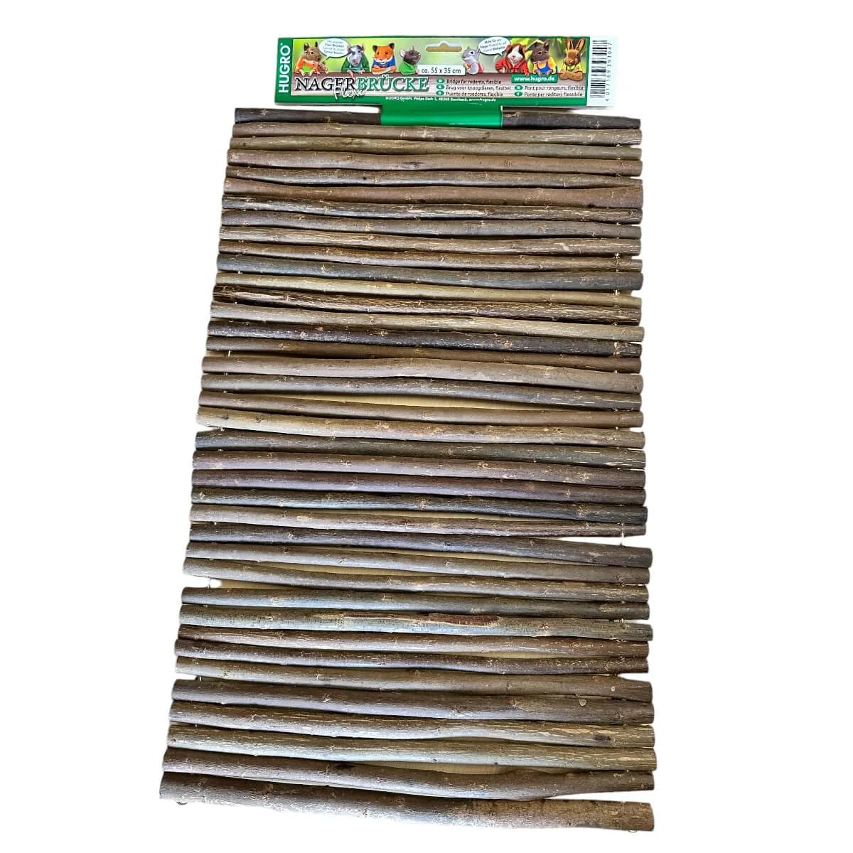 Die Weidenholzbrücken für Nager bestehen aus naturbelassenen Aststücken von Haselnusssträuchern oder Weiden, die durch einen dünnen Draht zusammengehalten werden und auf diese Weise flexibel formbar sind.
