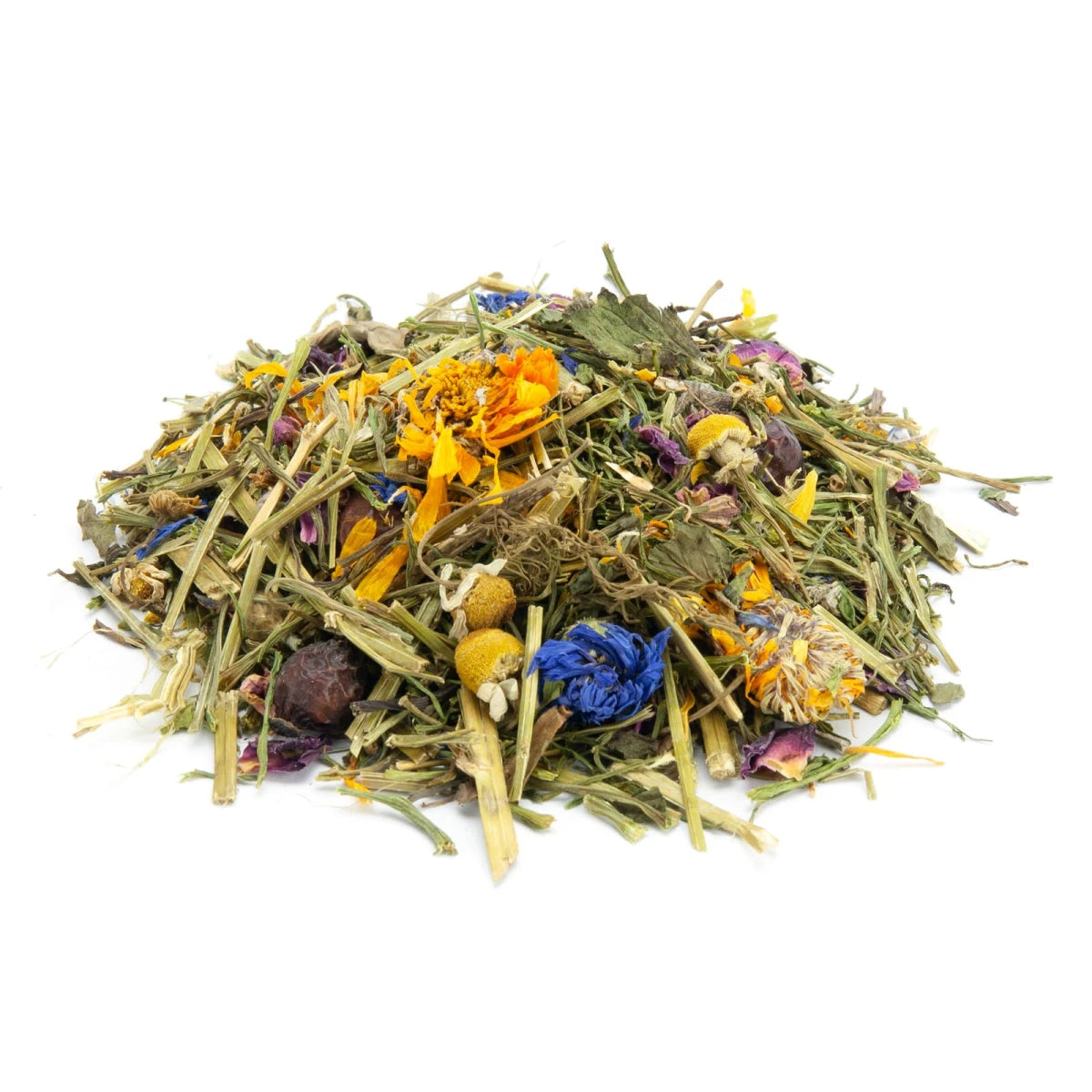 Johanniskraut, Pfefferminze, Salbei, Ringelblumenblüten, Kornblumenblüten, Kamilleblüten, Rosenblüten